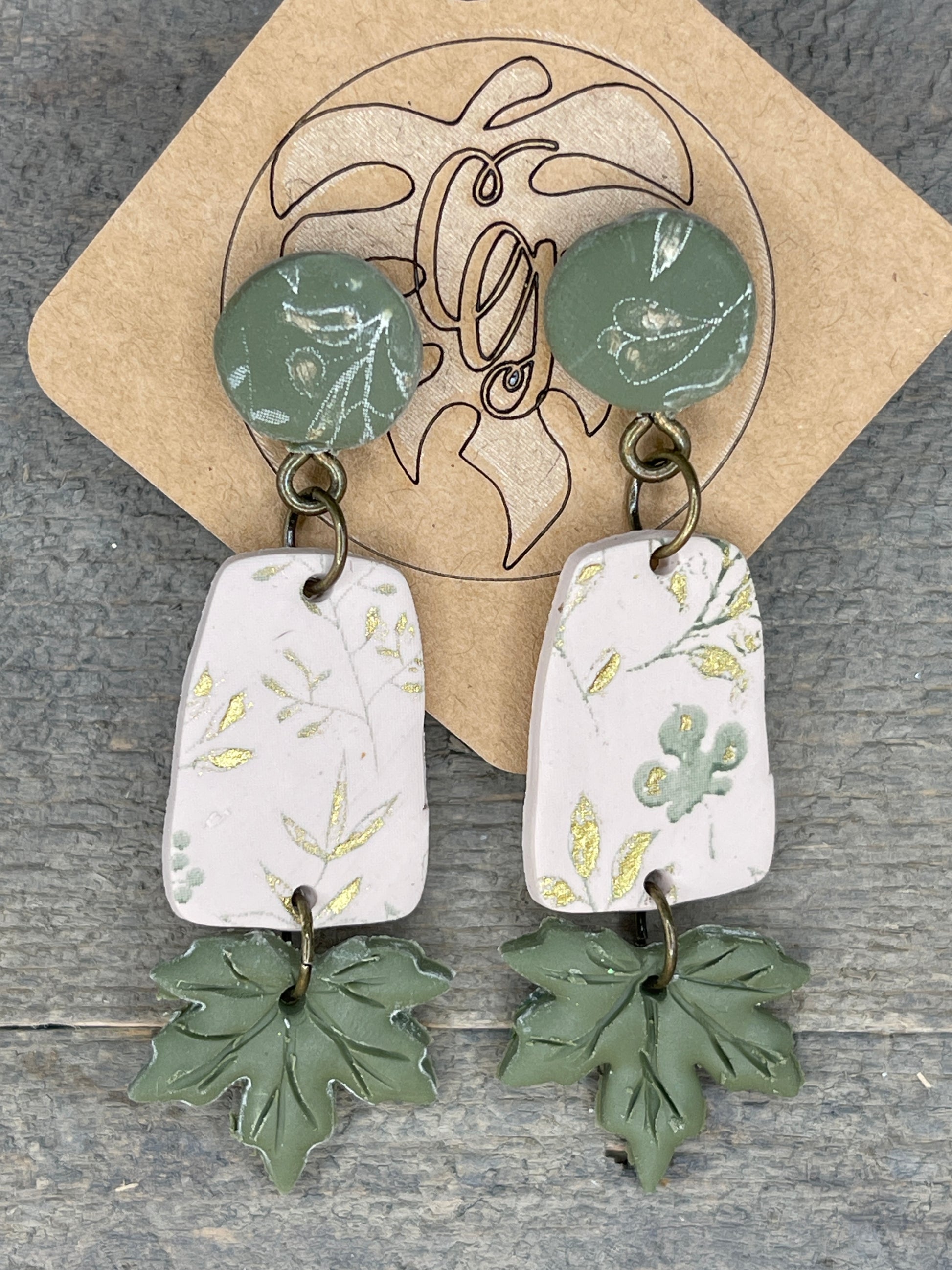 Nothing says fall like autumn leaves, and these are hand sculped and fitted with antique brass fittings and spacers. Crafted of polymer clay, each piece is hand sculpted and hand painted with gold detailing.