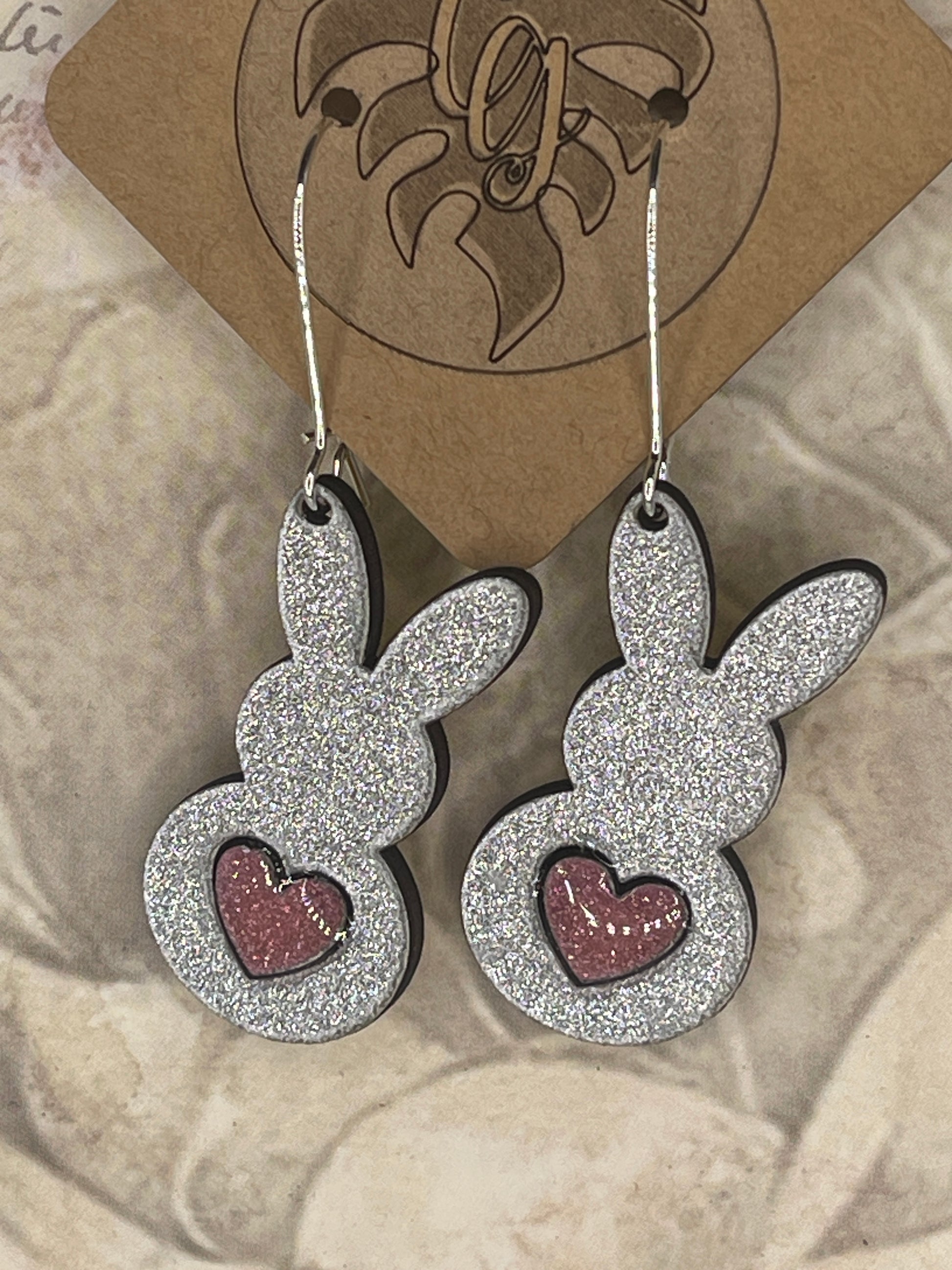 These handcrafted earrings are made of lightweight materials and maximum sparkle! Hop into spring with these adorable bunnies.