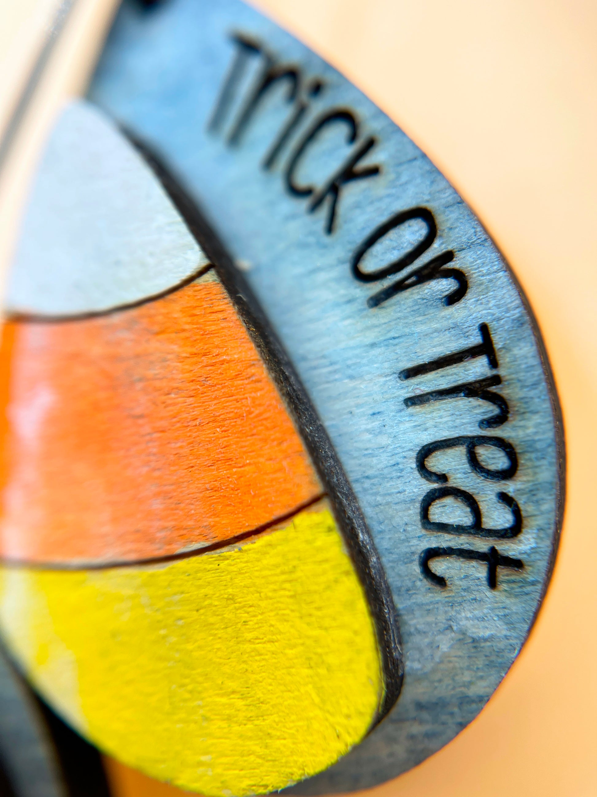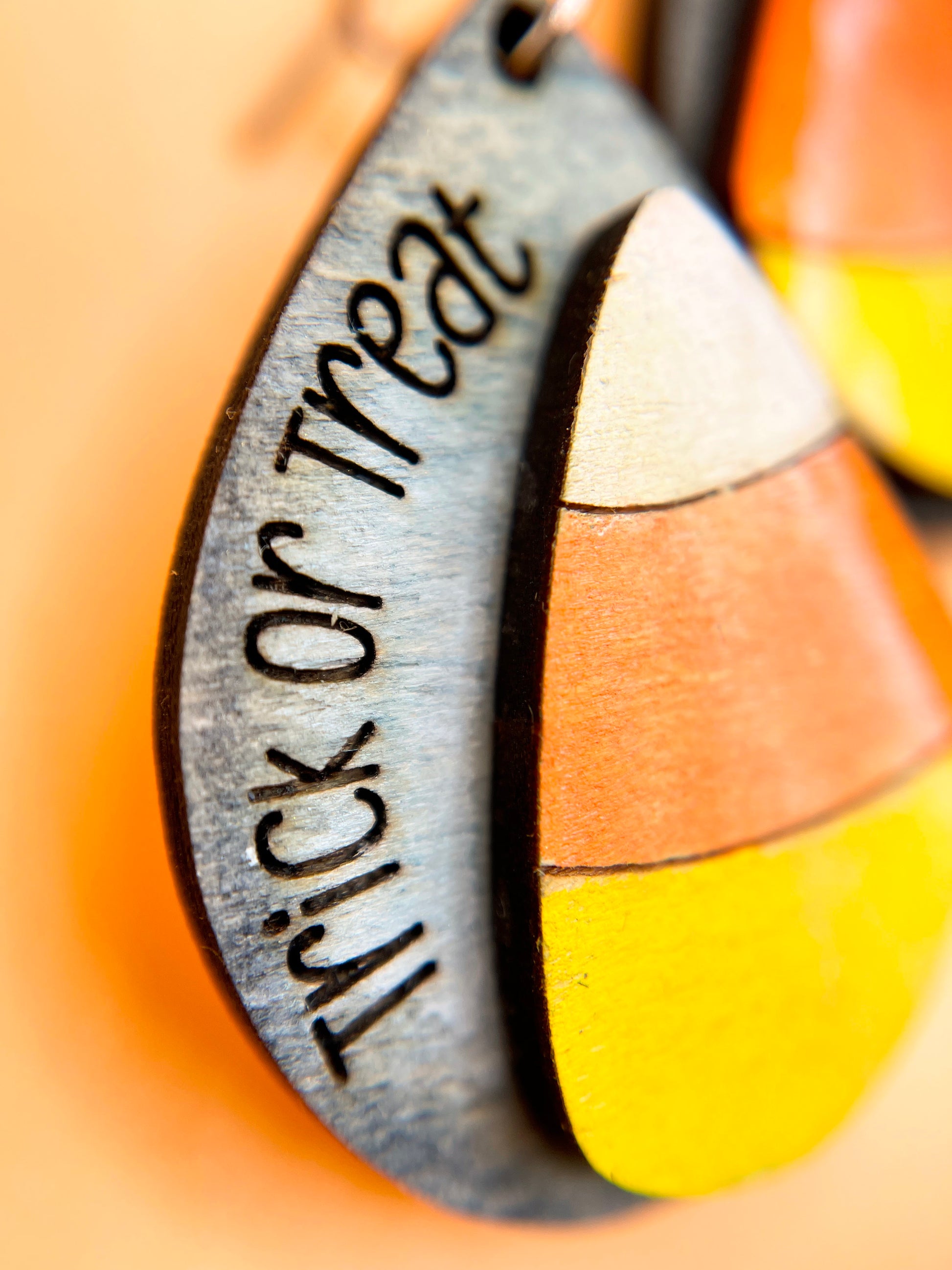 Trick or Treat? Definitely a treat. Hand painted wooden candy corns decorate this whimsical pair of wooden earrings with hypoallergenic ear wires.